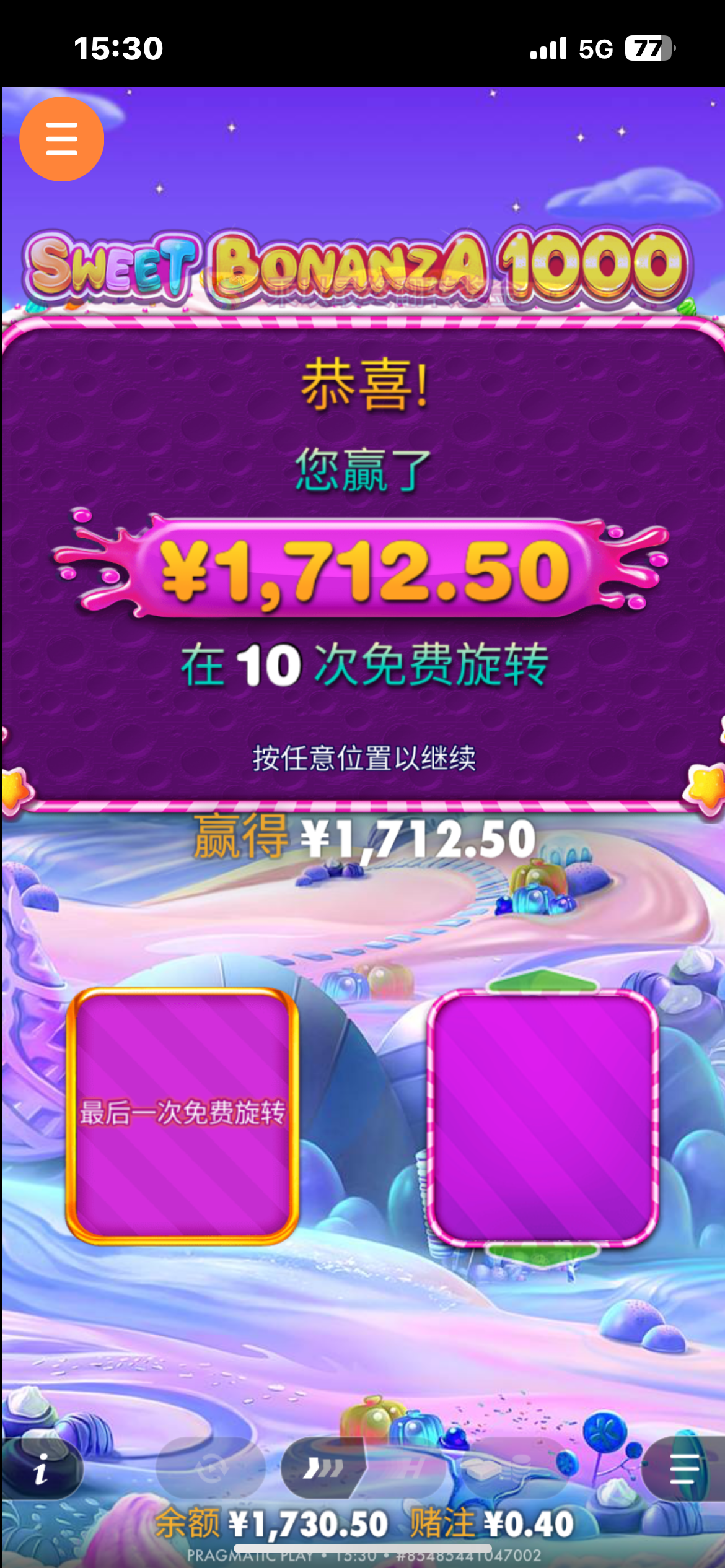 充了100进去没想到夺宝一直给免费旋转 平时最多20多倍这次直接68倍