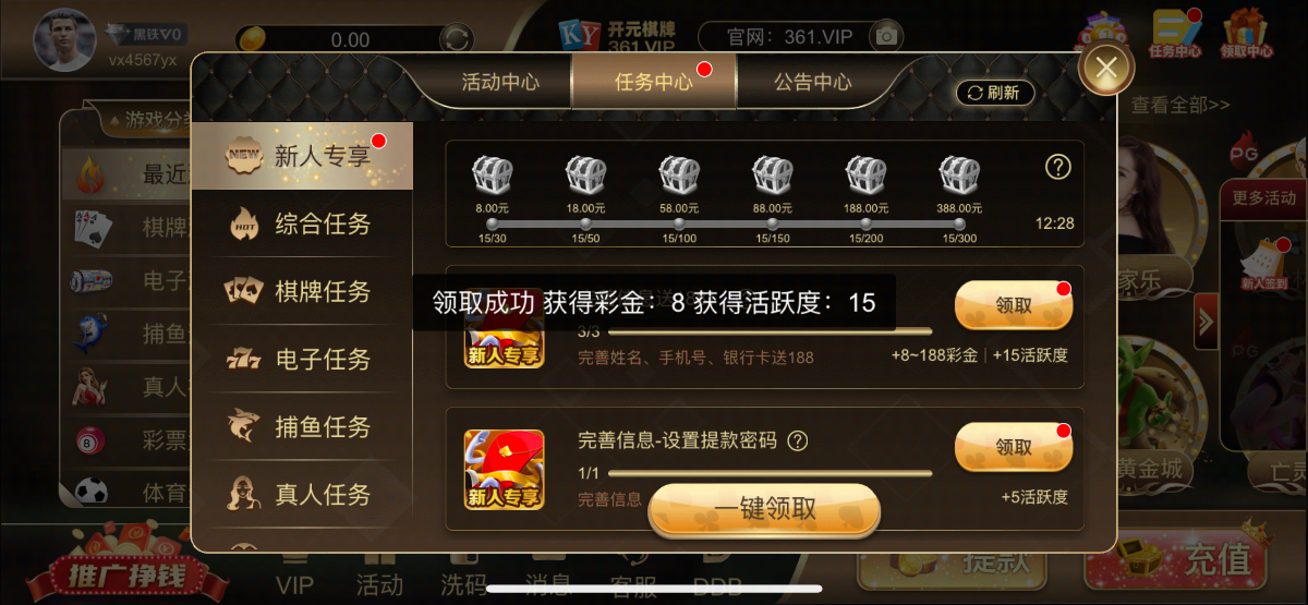 注册完善信息优惠任务领取