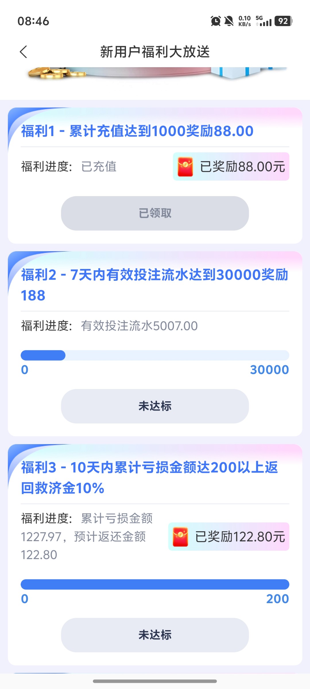 已达标 充值两三千 打码两万多