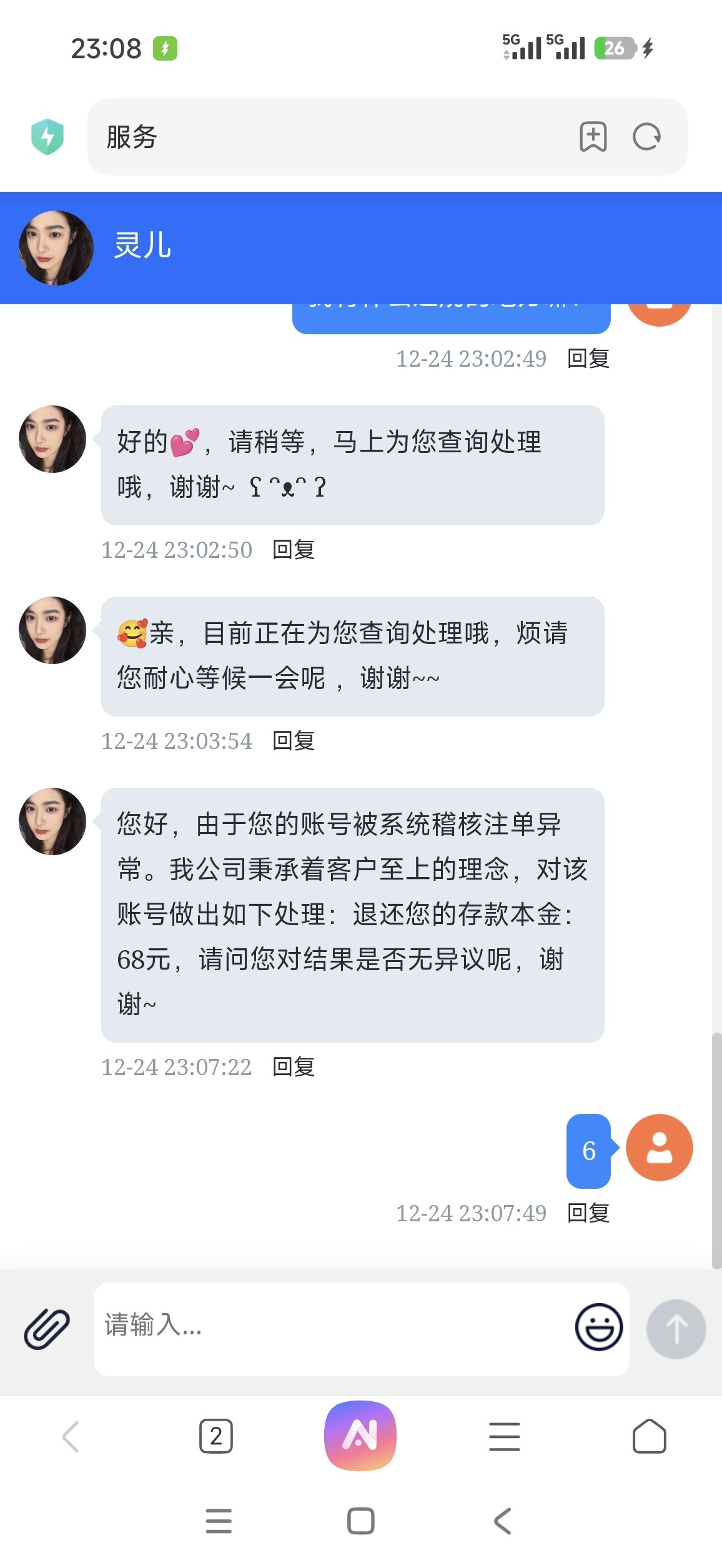 发短信申请27注册彩金没申请到,就首存个68+68赢了700提现,最后只退本。真的有点好笑,以为能吃肉了,结果毛都没有