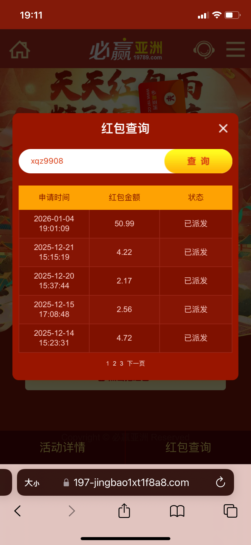 要前一天有投注量达到1000的 即可在天天红包雨抢红包 今天属实运气好抢了50还炸了 周六日上线也有红包抢 12-1点 19-20点 21-22点