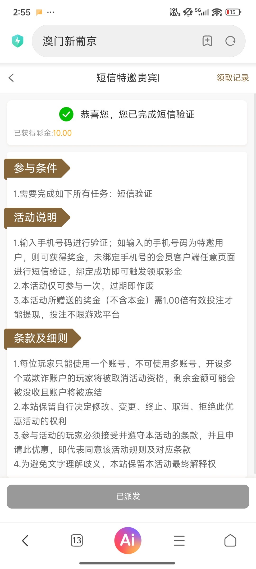 用手机号注册自动送的,上次没有到的,现在走短信地址试试
