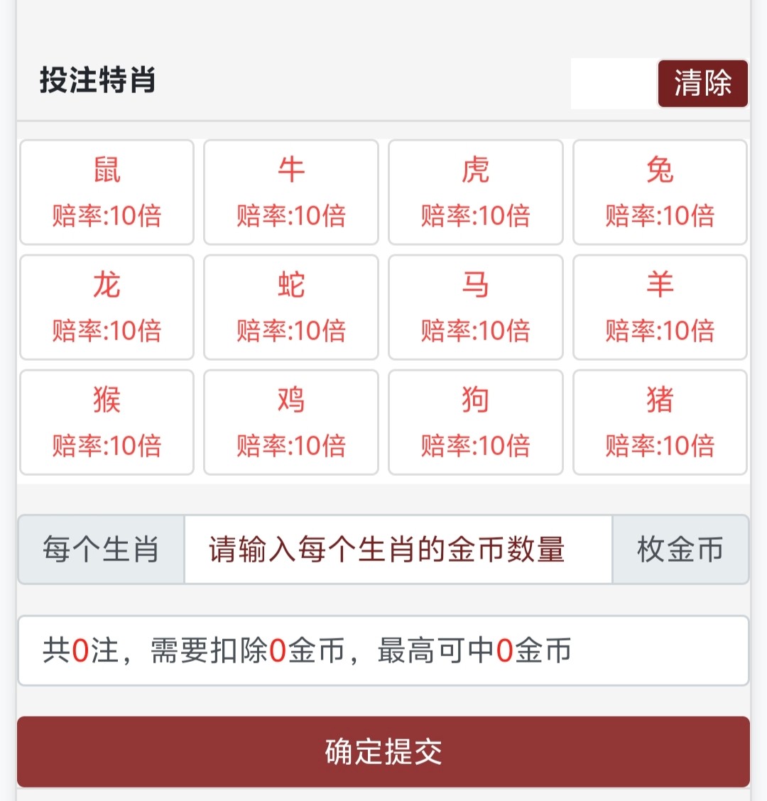 12个生肖从(鼠、牛、虎、兔、龙、蛇、马、羊、猴、鸡、狗、猪)中选出一个作为“中奖生肖”。