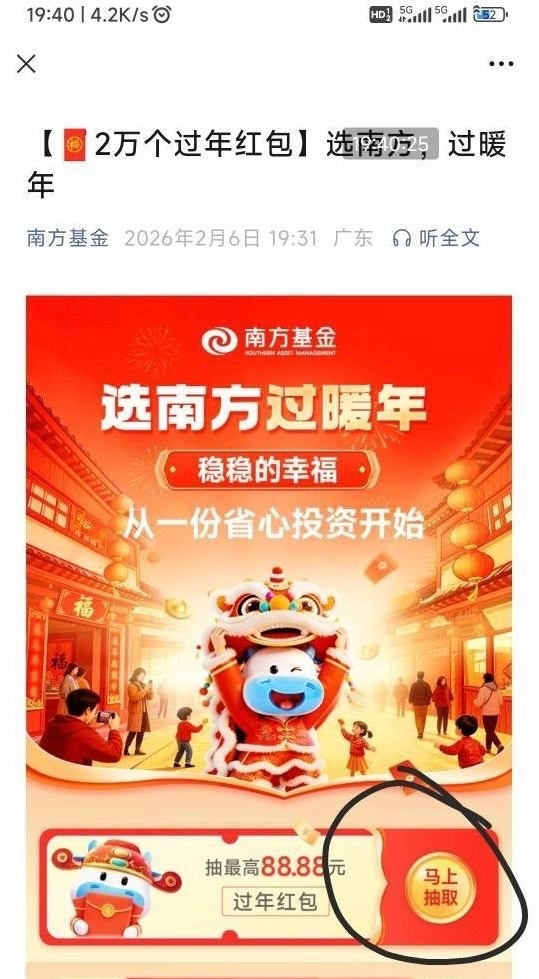 【南方基金白嫖最高88红包】