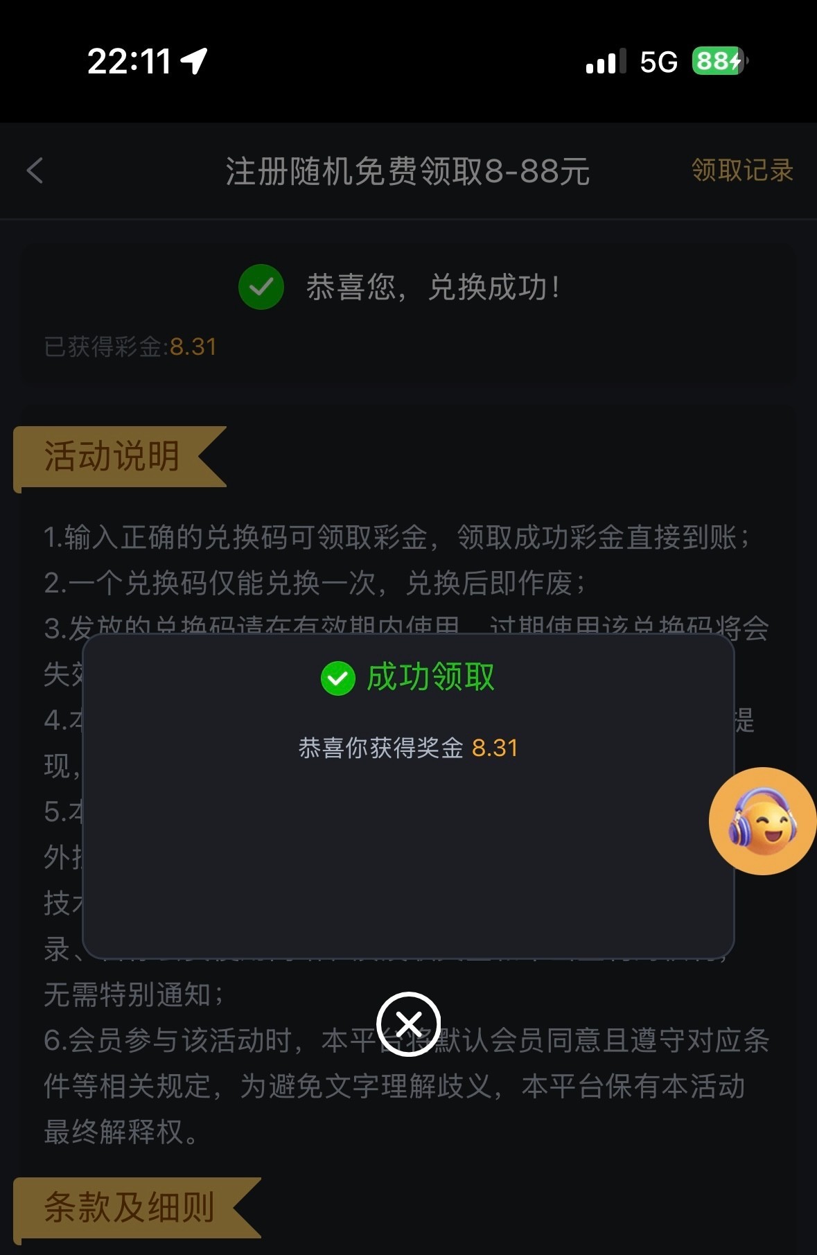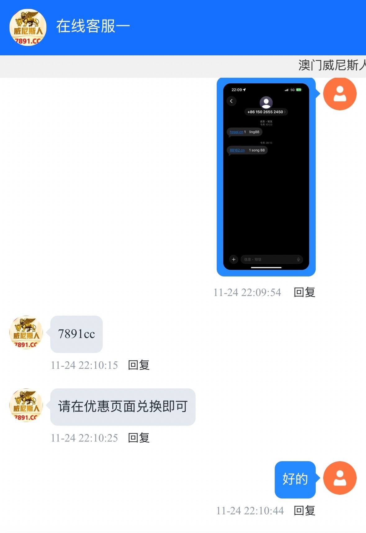 优惠活动里充值后找客服领取兑换码