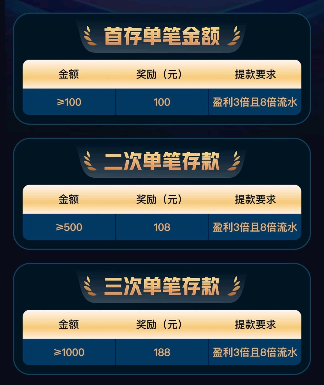 新玩家周期内充值满 1000 流水 5000 以上反688元, 只有注册的对应周期存款才有, 必须充值3天以上, 要官方平台过审的,可查验 多充多娱乐更容易达标,返现活动达标拿688元,官方没过审的补偿彩金88元,为了避免多iP不要开加速器。