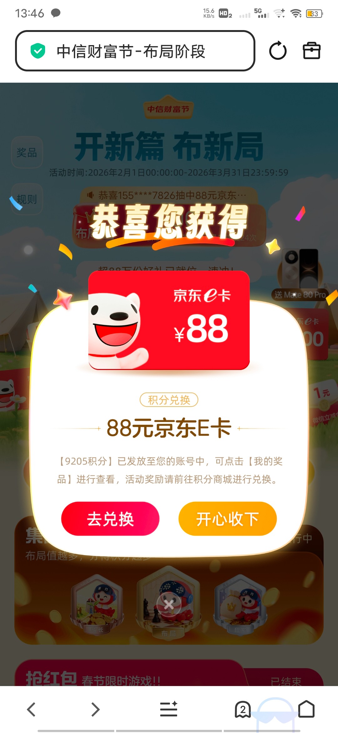 【中信抽奖活动】概率中88京东e卡