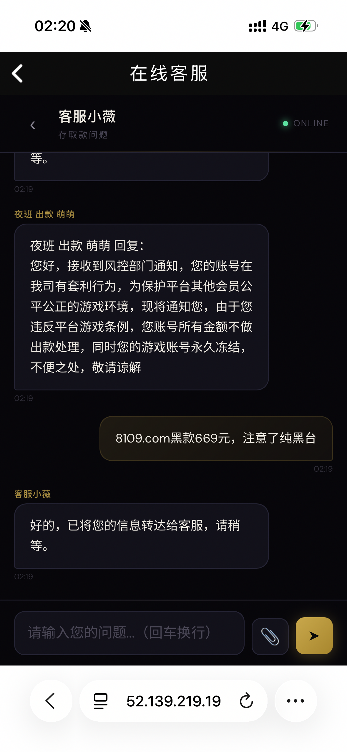 大家注意一下这个纯黑台,第一天提款就封号