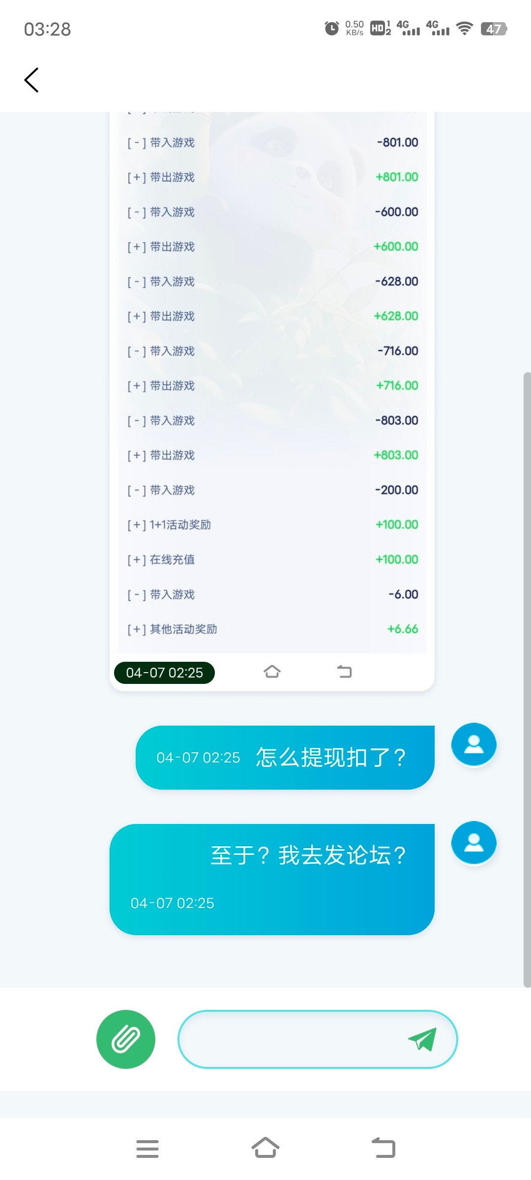 今天刚出的大熊猫,充了100,提款700扣除,客服不说话
